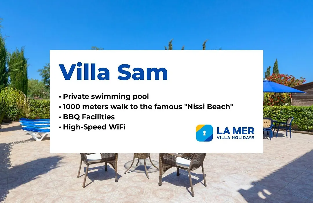 寝室3室のVilla Sam アヤナパはNissi beachから1キロメートル以内に位置し、リフレッシュできるプールがあります。